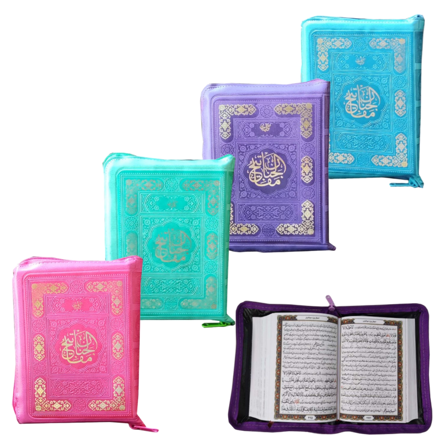 فونت و طراحی: معمولاً فونت این نسخهها خوانا و با سایز مناسب برای استفاده در نور کم یا شرایط خاص است. برخی نسخهها دارای حاشیههای تزیینی یا صفحات رنگی هستند.