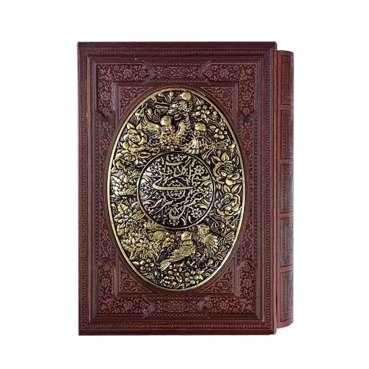 - جلد چرم قابدار که محافظت عالی از کتاب انجام میدهد و زیبایی آن را دوچندان میکند.